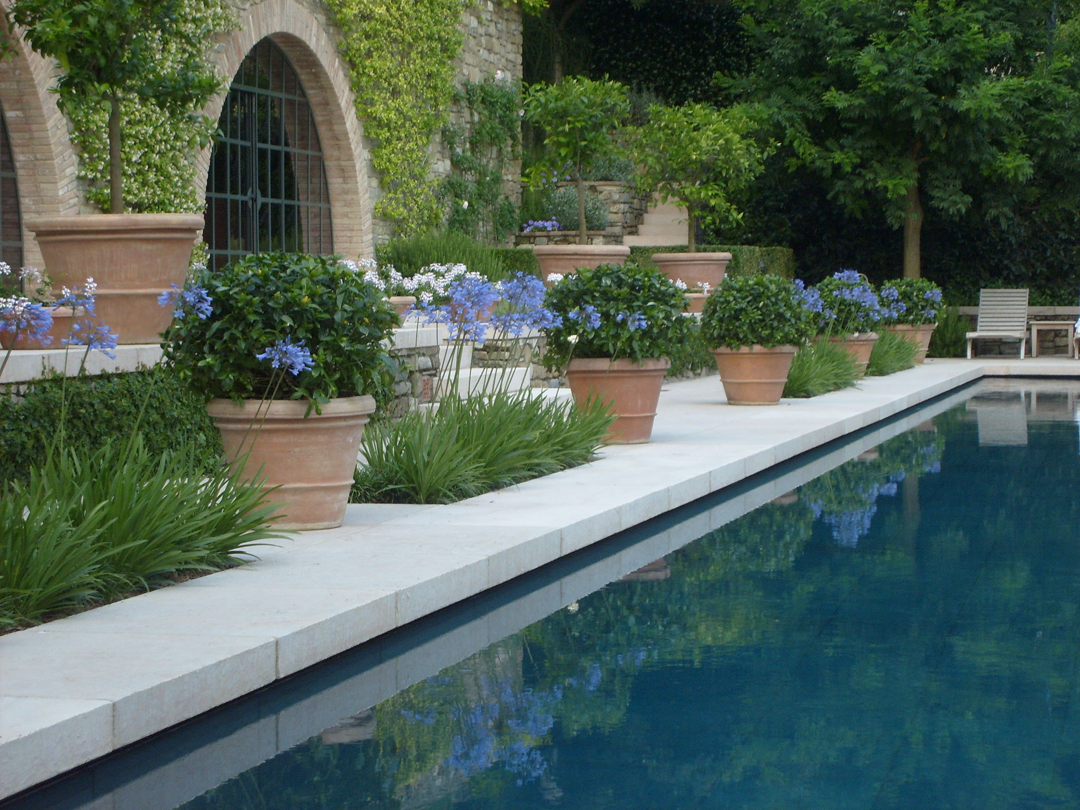 Loin d’une décoration florale savante ou sophistiquée, ses jardins laissent parler sa rigueur dans le dessin et le soin minutieux apporté au moindre élément de la composition.