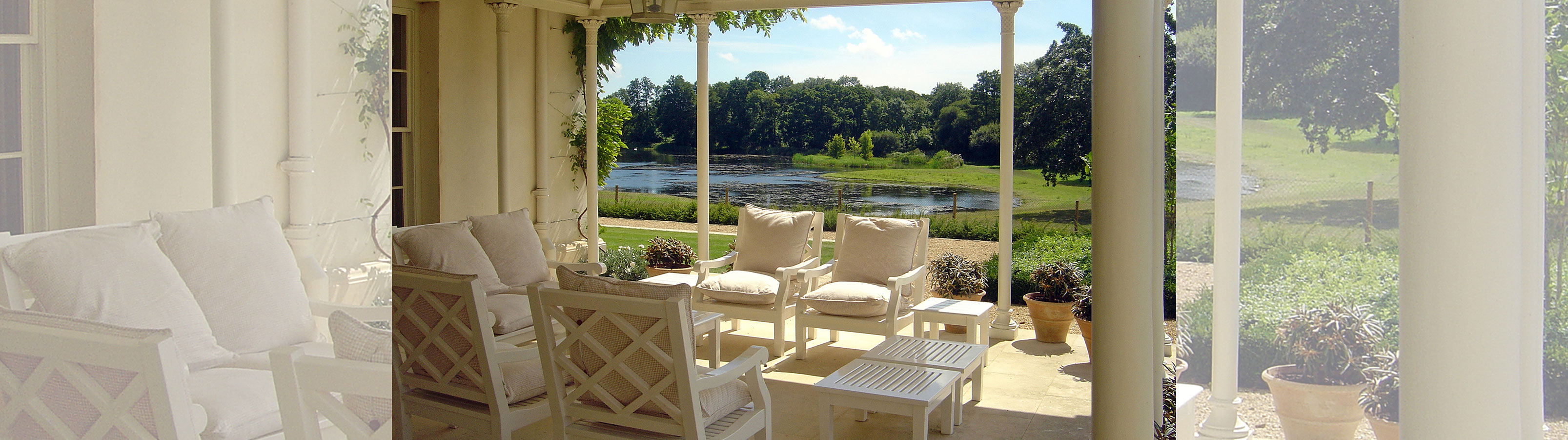 Chartwell. Terrace furniture with ecru coloured cushions.