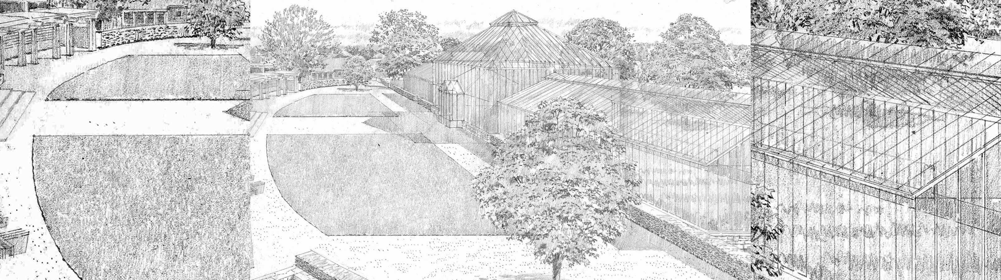 Design of a new space for a Conservatory and Butterfly Greenhouses. Arboretum. Ohio. Drawing : Peter Lorenzoni
