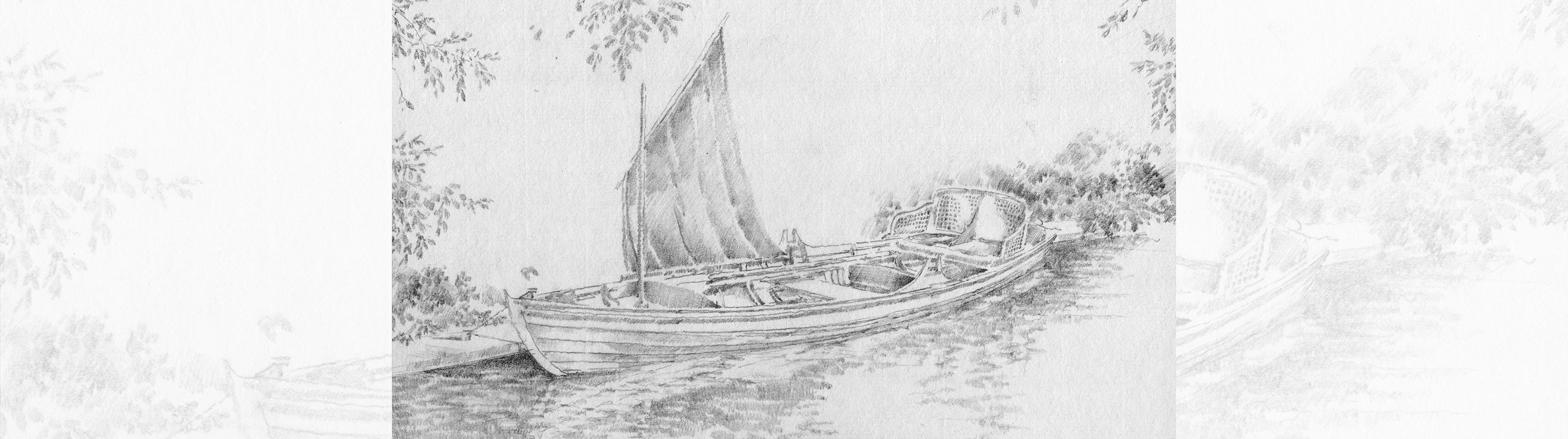 Barque à gréement associant divers bois sélectionnés et un travail de cannage
