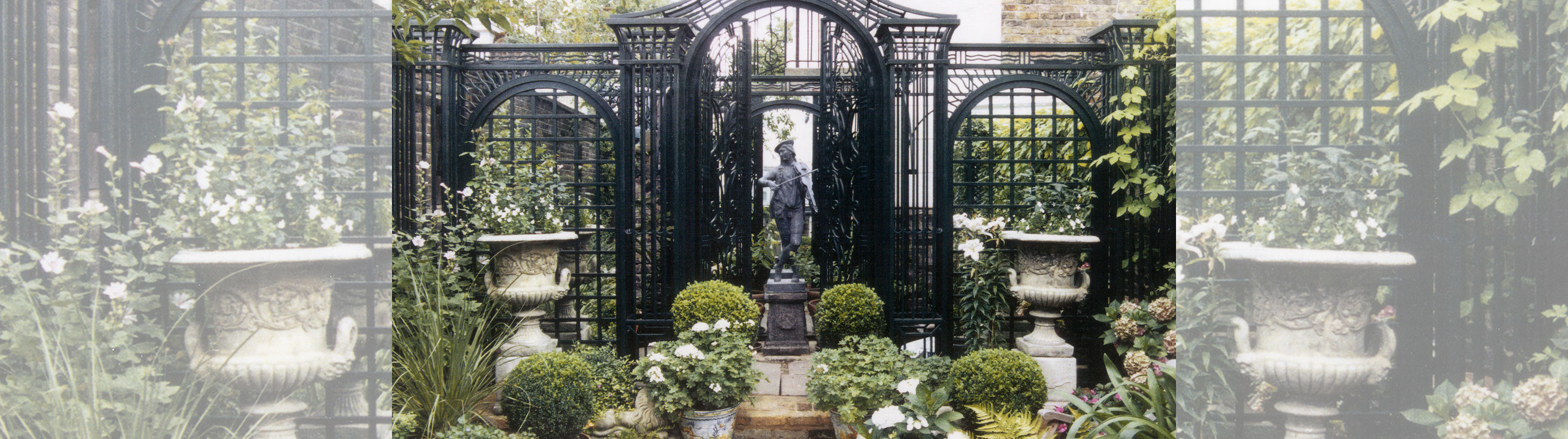 Comme en musique, l’ornement peut se définir comme un embellissement du jardin qui souligne et appuie la composition d’ensemble. Au sein d’un véritable orchestre de métiers et de savoir-faire, François Goffinet fait réaliser nombre de ces ornements qui participent, autant que la composition florale, à l’essence du jardin. Portails, treillages, palissages de bois ou de métal, fontaines ou sculptures en pierre, pots en terre cuite ou en fonte, lanternes... ou barque amarrée à son abri, chaque espace peut faire naître un objet élaboré selon les longues traditions de ces métiers : ferronniers, sculpteurs, tailleurs de pierre, fontainiers, éclairagistes, charpentiers et menuisiers.